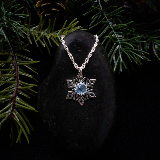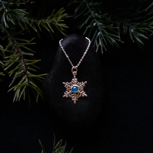 Dainty Snowflake Pendant with London Blue Topaz